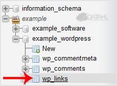 5. Select appropriate table you want to delete like If you want to delete table "wp_links" then click on it.